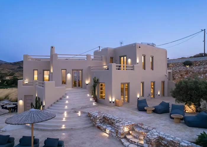 Willa Akrotiri Estate Naxos - Private Hillside Estate Naxos City dysponuje tarasem z widokiem na basen, 25 min jazdy od lotniska Naxos Island National.